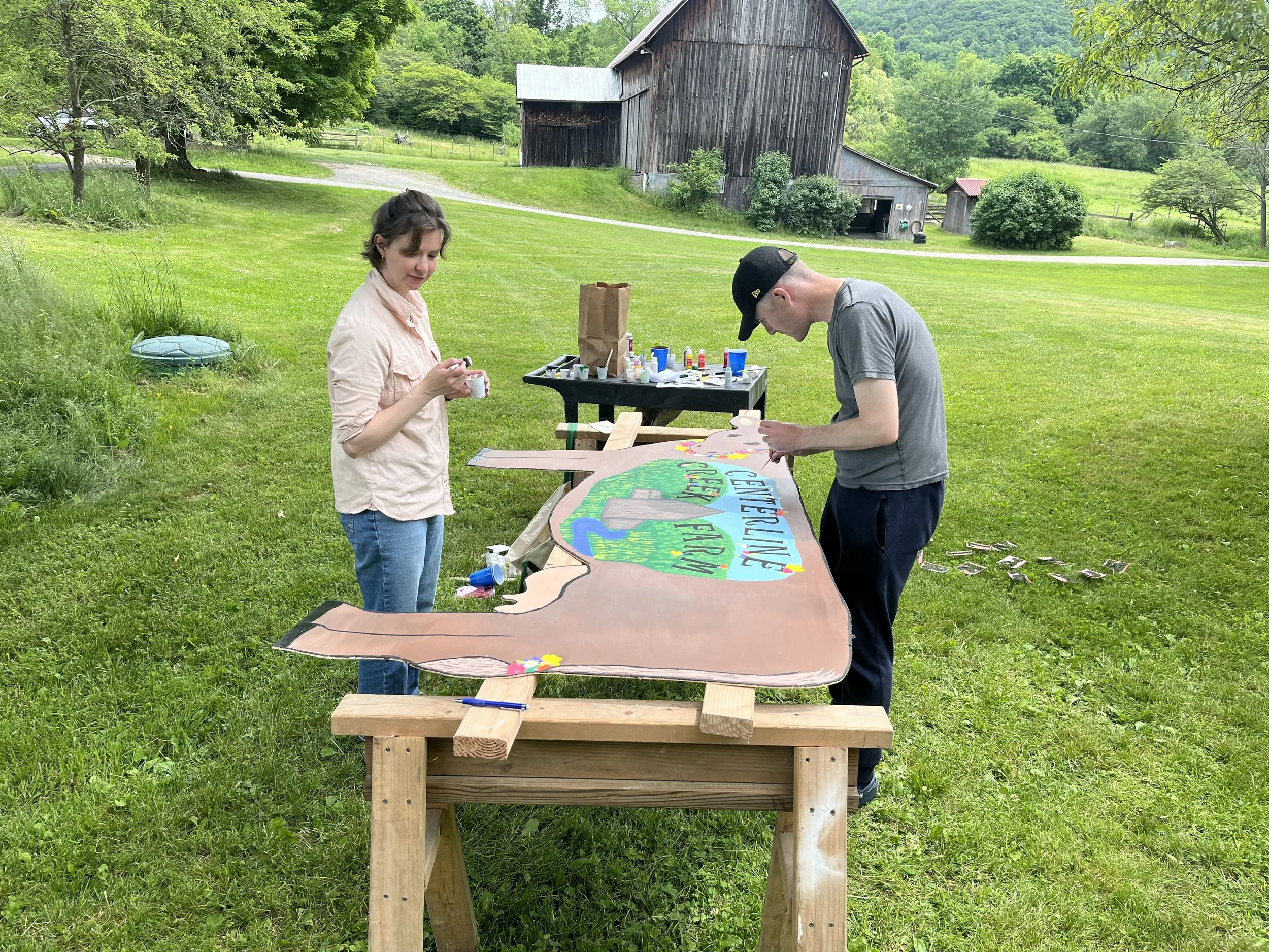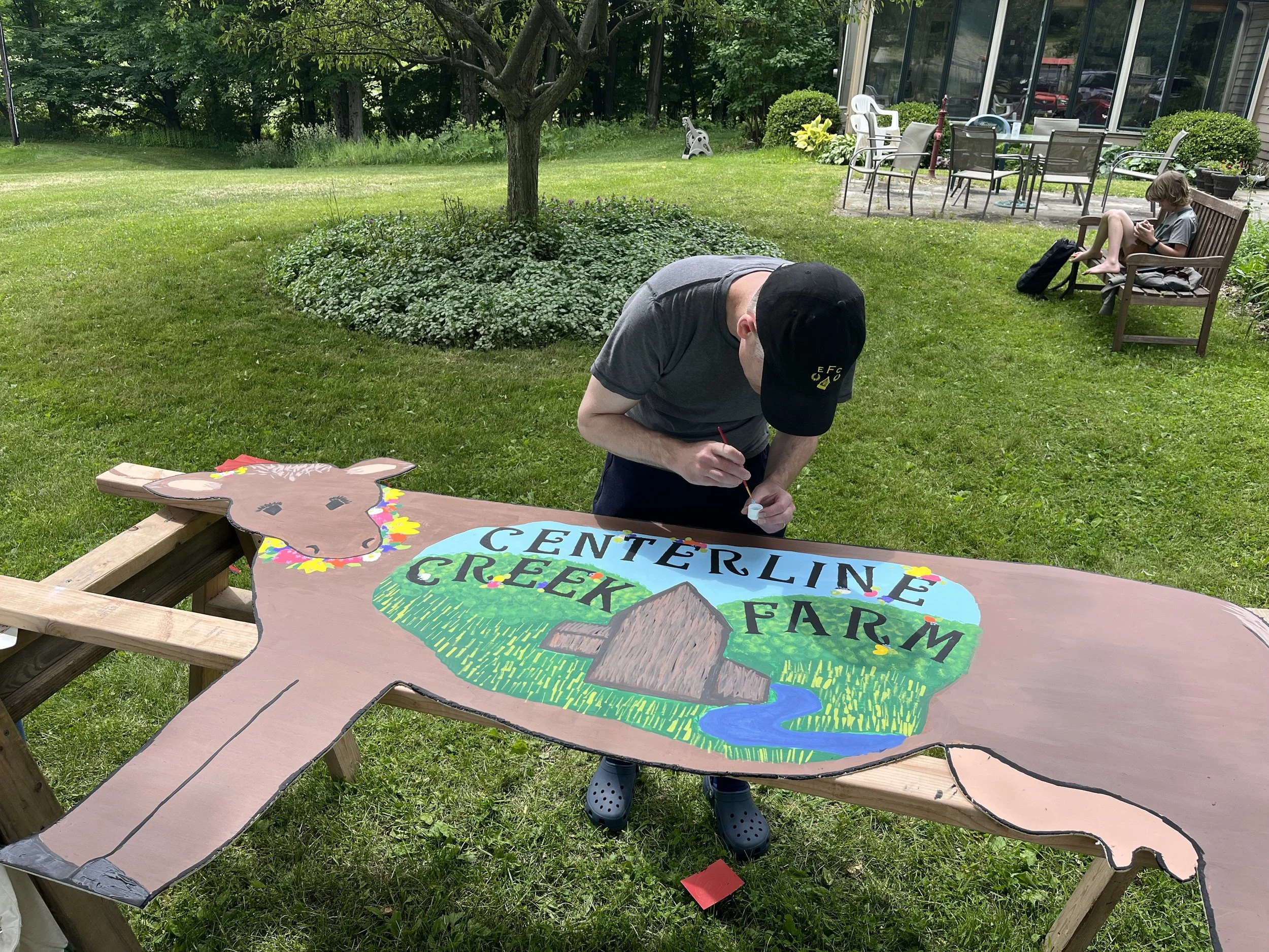 Lizzie and Kurt decorating our cow for Dryden Dairy Day 8 June 2024
